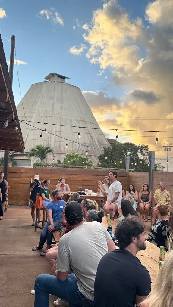 Our tasting room sits inside the historic Waialua Sugar Mill, blending rustic charm with modern island style. Outside, kids and families love checking out our Vietnam-era Huey helicopter, while adults relax with cocktails, music, and the occasional food truck or karaoke night. It’s a gathering place, a landmark, and a little slice of North Shore history.